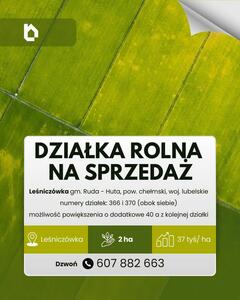 Sprzedam dwie działki nr 367 i 370 w Leśniczówce, gm. Ruda - Huta, obok siebie, łącznie 2 ha, cena 74tyś do negocjacji, ...